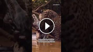 The jaguar (Panthera onca) is a large cat species and the only living member of the genus Panthera native to the Americas. With a body length of up to 1.85 m (6 ft 1 in) and a weight of up to 158 kg (348 lb), it is the largest cat species in the Americas and the third largest in the world. Its distinctively marked coat features pale yellow to tan colored fur covered by spots that transition to rosettes on the sides, although a melanistic black coat appears in some individuals. The jaguar's powerful bite allows it to pierce the carapaces of turtles and tortoises, and to employ an unusual killing method: it bites directly through the skull of mammalian prey between the ears to deliver a fatal blow to the brain. #jaguars #jaguar #crocodile #animals #viral