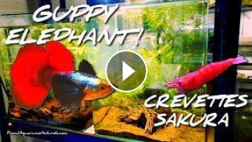 Un magnifique Guppy Dumbo de selection avec son harem et des crevettes : tout ensemble dans un nano aquarium cube au bord arrondis, et ca marche !