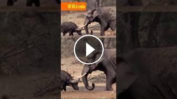 A colossal elephant overpowers a buffalo, sending it tumbling four legs up in a wild clash! Watch the chaos now! #野生動物 #動物 #nature #wildlifefight #animalbattle #elephantvsbuffalo #epicfight #naturelovers