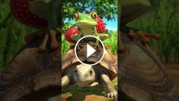 A frog rides on a turtle's back and carries strawberries behind it. #viralvideo #videoshorts