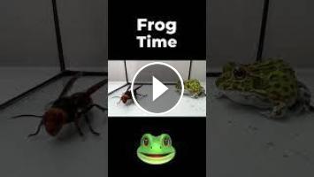 A small frog challenges a mother hornet. #frogtime
