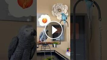 Gizmo attempts to train Bloob ???????? #talkingparrot #africangrey