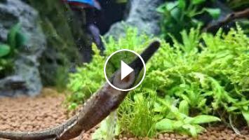 un poisson super sympa a regarder évoluées dans un aquarium ,il parcourt toutes les surfaces des vitres ,des plantes .