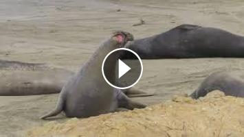 - Adult male elephant seals fighting, Piedras Blancas Elephant Seal Rookery, San Simeon