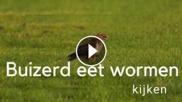 Een buizerd (Buteo buteo) die wormen eet! Als een kip loopt hij over het gras en pikt regenwormen uit de grond. Meeuwen zie ik dat ook vaak doen, maar een buizerd heb ik nog nooit op deze manier voedsel zien zoeken. Een robuuste roofvogel als een buizerd moet mollen vangen, en veldmuizen of andere zoogdieren. Geen weke regenwormen, maar de beelden zijn duidelijk: deze buizerd eet regenwormen en werkt er meerdere naar binnen.