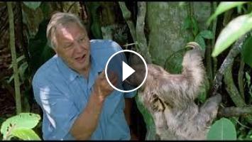 In this classic sequence from Life Of Mammals, Sir David Attenborough gets up close to a sloth in the forest now in HQ.