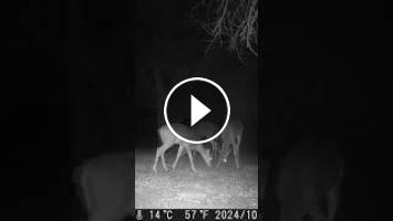 Two cute young deer in the night. One runs off.
