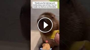 Watch this touching moment as a grateful capybara expresses its thanks to its caregiver. Despite being extremely sleepy, the capybara makes an effort to shake hands, showing deep appreciation for the meticulous care it receives.